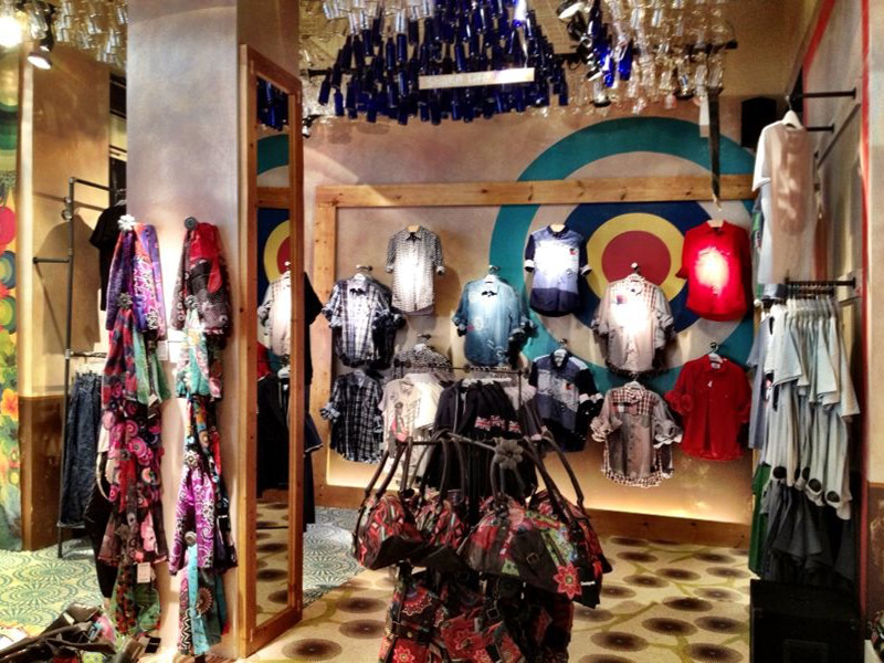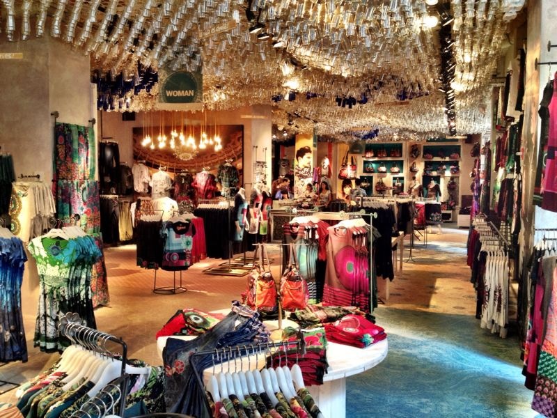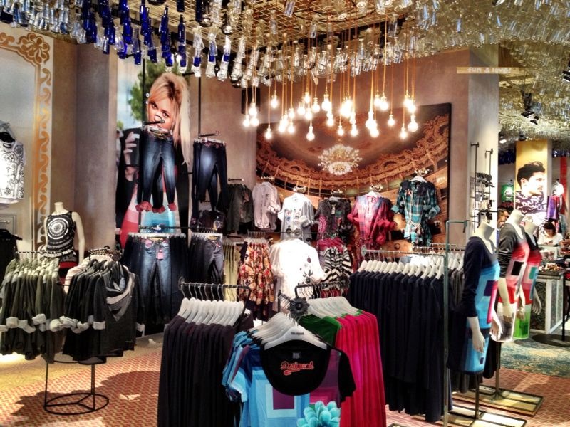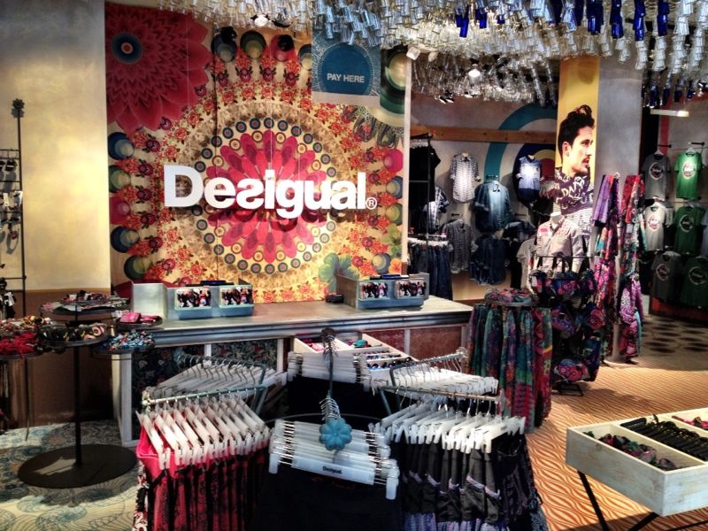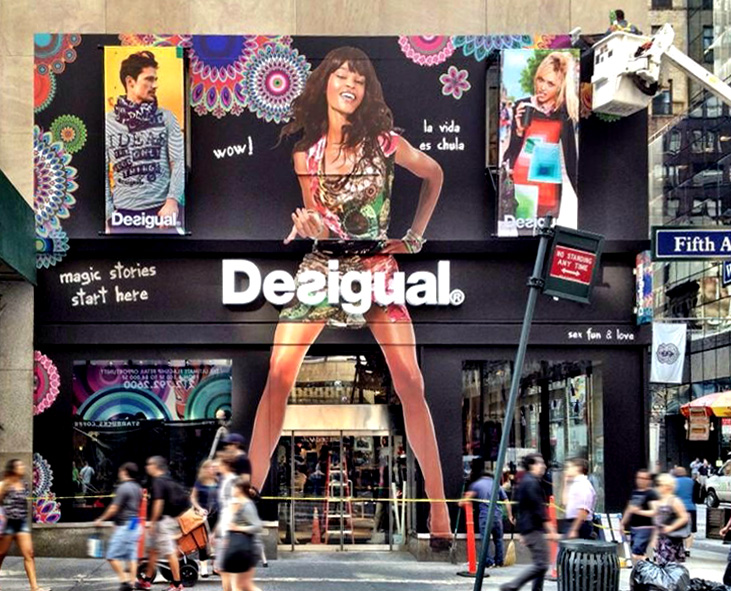 A man takes a cigarette break close to a hotdog stand next to a Desigual store on 5th Avenue and 45th Street.