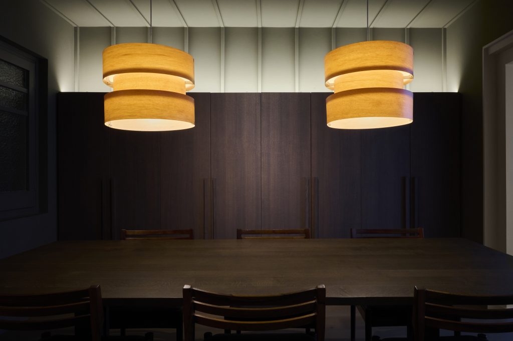 Uno de los objetivos era llevar la luz natural que entra en el piso desde la fachada principal hacia los espacios más interiores. La eliminación de las paredes divisorias fue lo principal para lograr esto, pero el uso de un color claro en el espacio del salón fue igualmente importante. Esta pieza se convirtió en una caja de luz muy llamativa desde los espacios interiores. El uso de colores más sombreados en el área de cocina-comedor resalta los pasajes hacia el salón, que son deslumbrantes durante el día. Por otro lado, está la iluminación artificial que hemos utilizado en el área de cocina-comedor. Los focos concentrados, con un haz de luz de 9 grados, en la zona de la cocina dan un toque de teatralidad a este espacio sombreado y las lámparas de chapa de madera sobre la mesa del comedor aportan calidez y concentran la luz en la superficie de la mesa, que cumple tanto la función de comedor como de espacio de trabajo. La cocina se convierte no solo en un espacio funcional, sino en uno en el que estar, al igual que el comedor y el salón. Es la iluminación lo que marcará la diferencia entre una cocina como espacio de trabajo y la cocina como espacio de estar.